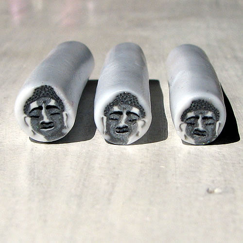 - snij dunne plakjes (met een scheermesje of afbreekmesje) van de cane en plaats die op een balletje basis klei.
