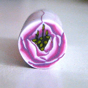 Een cane is een rolletje/staafje zachte (nog niet gebakken) FIMO klei. Je kunt een cane gebruiken om kleikralen van te maken of om kleikralen mee te bekleden. Het formaat van deze cane is ± 1cm doorsnede en 5cm lang.