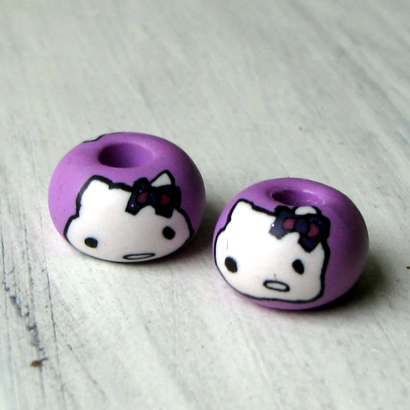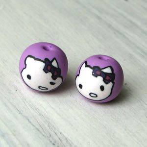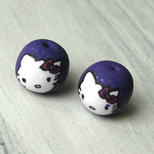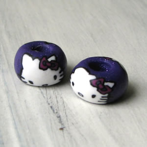 Handgemaakte FIMOkraal van Liever Creatiever Formaat: ± 13mm Materiaal: FIMO, gelakt Kleur: lila met Hello Kitty De prijs is per kraal…