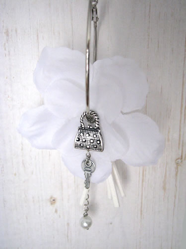 De hangers kunnen eenvoudig om een (smalle) creool geschoven worden met een bloem ertussen.