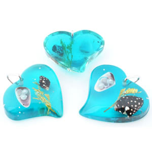 Zomerse hanger in de vorm van een hart, gevuld met schelpjes en pareltjes Formaat: 39mm Materiaal: Acryl …
