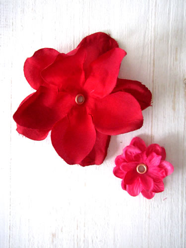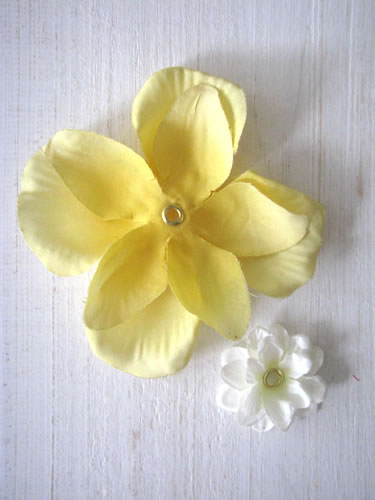 Vrolijke set van 2 zijde bloemen met oogje De grote bloem is slap en bestaat uit 2 lagen. Het kleine…