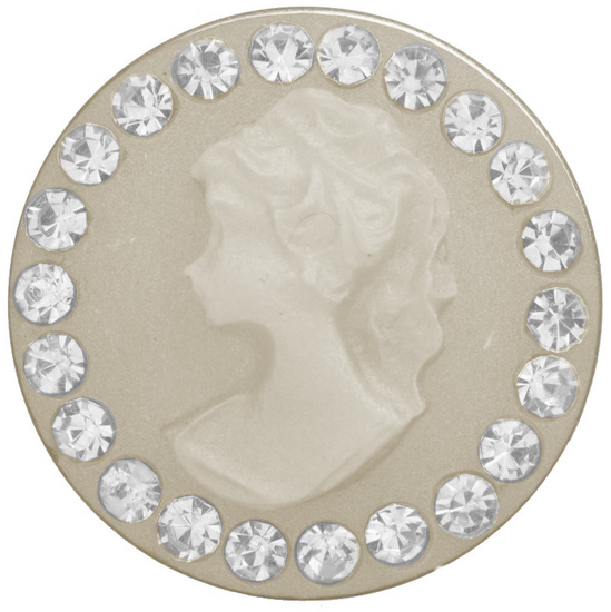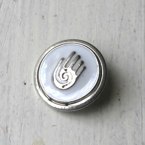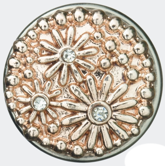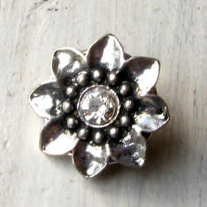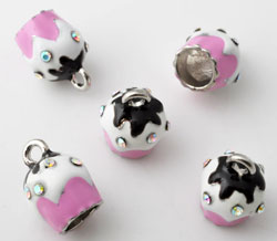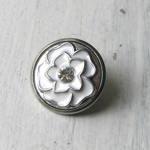 Mooie metalen bedel met strass steentjes in een laagje witte epoxy Formaat: 18mm…