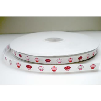Heel schattig lint met kleine cupcakes in de kleuren roze en bordeaux De prijs is per meter. Het lint is…