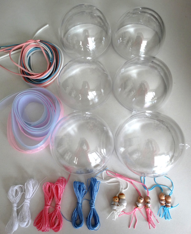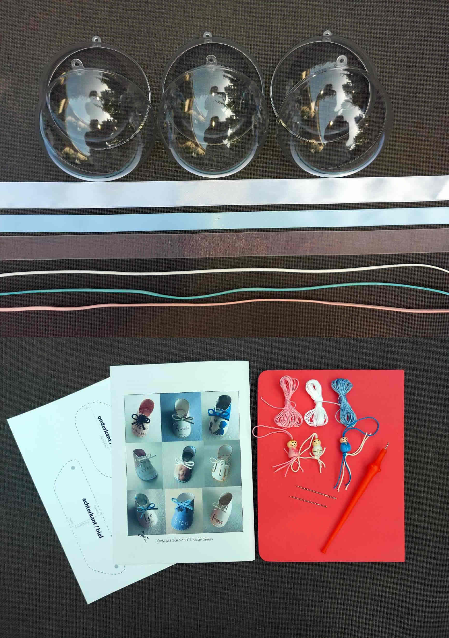 Extra voordelig onderdelen pakket om zelf 6 geboorteschoentjes te maken! - 6 transparante bollen met een doorsnede van 10cm - 6…