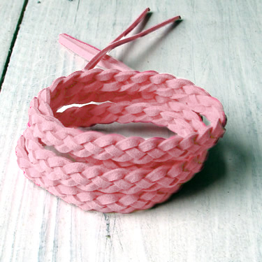 Gevlochten babyroze armband De veters zijn gemaakt van suedine (imitatieleer). De lengte van de armband is ±85cm en de breedte is 7mm. Zeer geschikt…