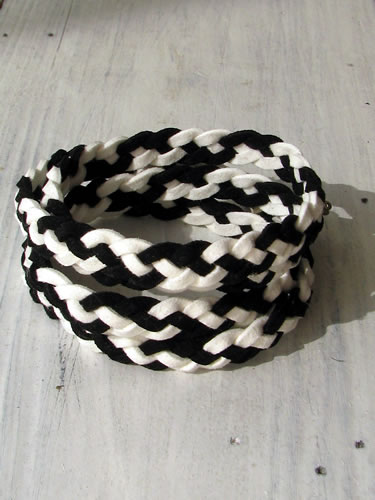Gevlochten zwart-witte armband, van 4 veters! De veters zijn gemaakt van suedine (imitatieleer). De lengte van de armband is ±85cm en de breedte…