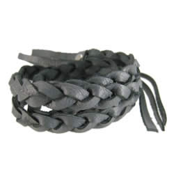 Gevlochten grijze armband De veters zijn van echt leer. De lengte van de armband is ±95cm en de breedte is 1cm. Zeer geschikt voor…
