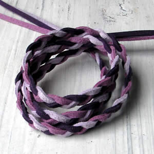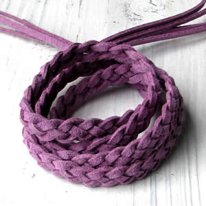 Gevlochten lila armband, van 4 veters! De veters zijn gemaakt van suedine (imitatieleer). De lengte van de armband is ±85cm en de breedte is 1cm. Zeer…